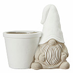 Flower Pot Santa Stefan, White. A white small flowerpot. A grey Santa with a white Santa hat sits next to it. A nice Christmas pot for e.g. a hyacinth!
