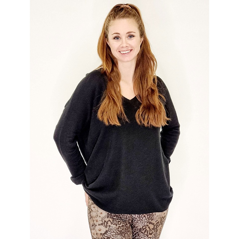 Long Sleeve Sweater, Black. A soft and comfortable sweater with v-neck. A nice basic shirt that is good to wear over e.g. a dress.